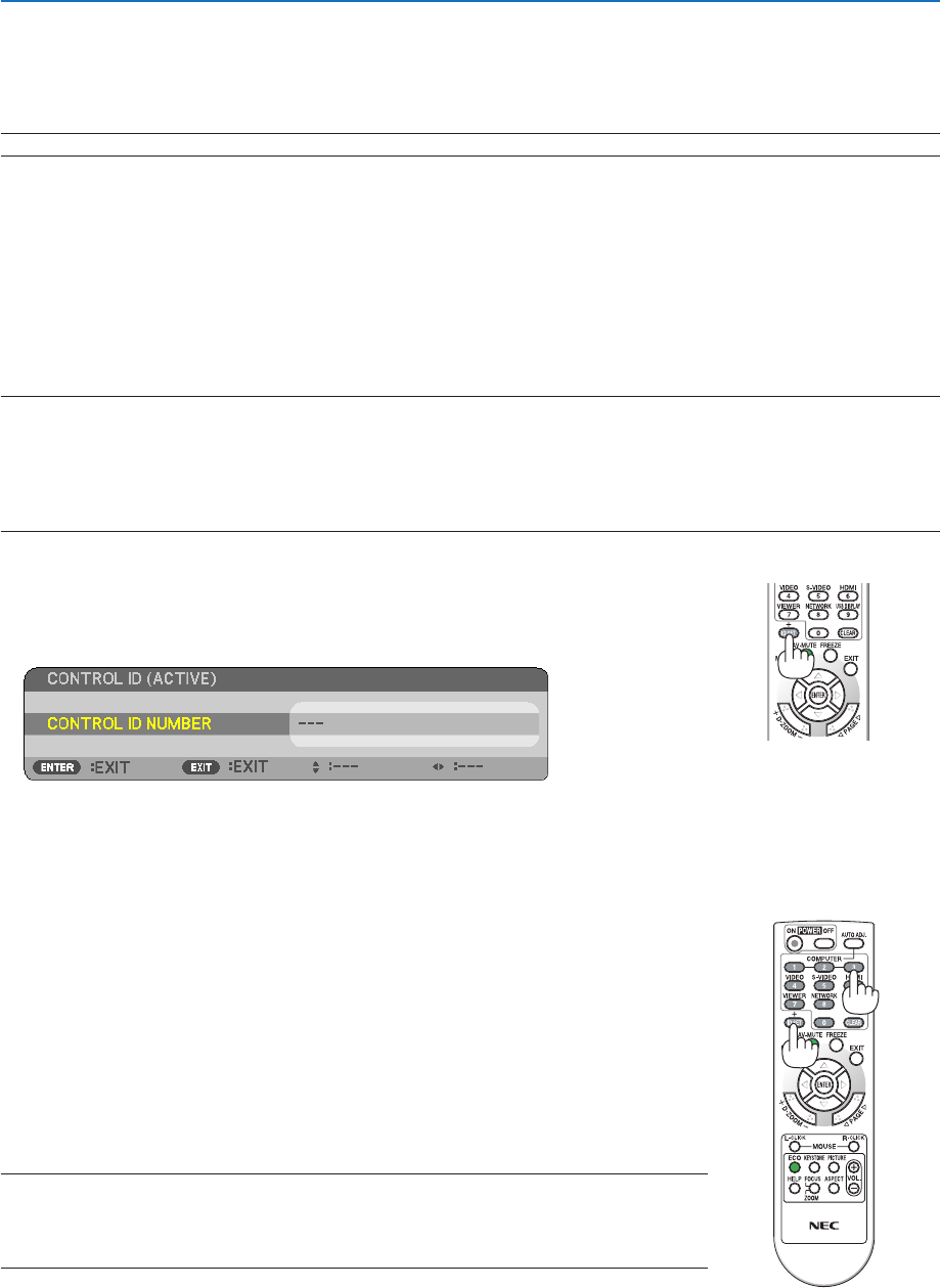 the CONTROL ID function. (In this case the buttons on the projector cabinet can be used.)